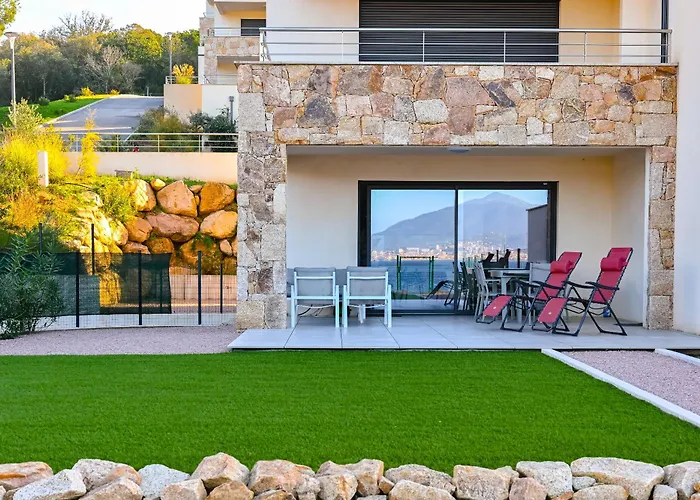 The accommodation features a mini-kitchen furnished with an oven and a dishwasher. T3 Vue Mer 100 M2 De Jardin 'D' apartment is 5 km away from Campo dell'Oro airport.
